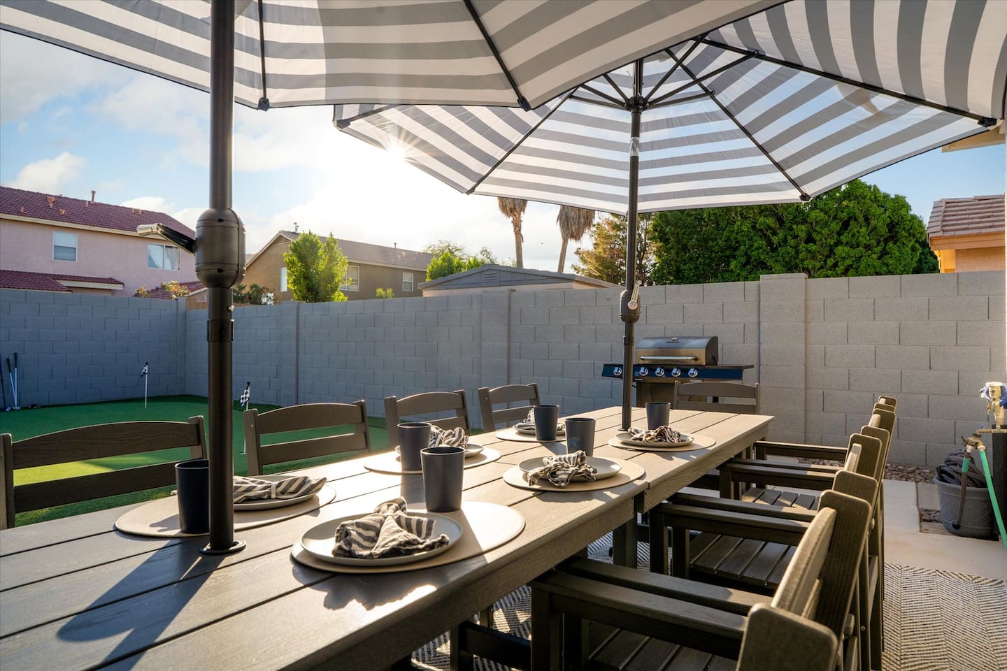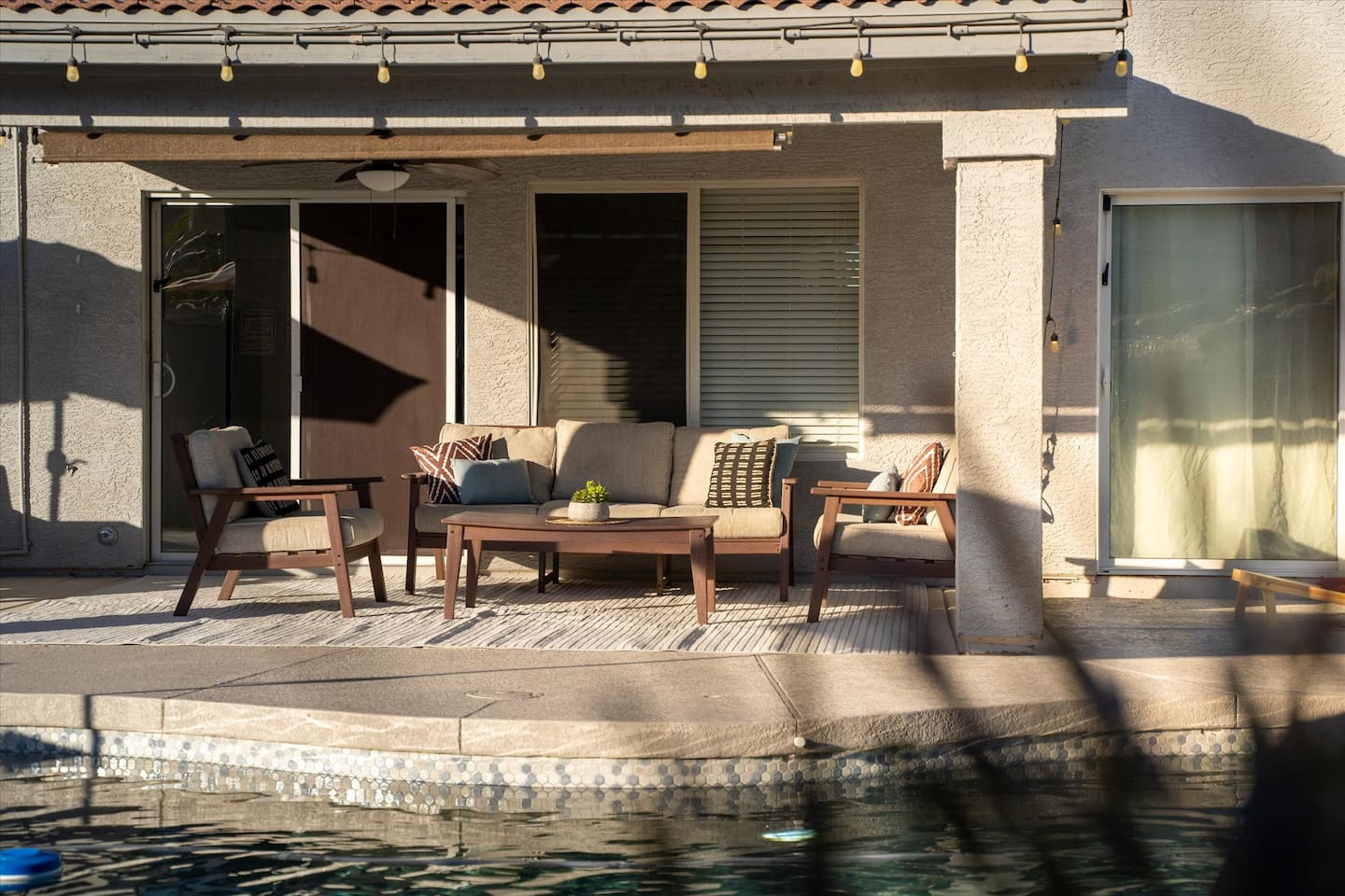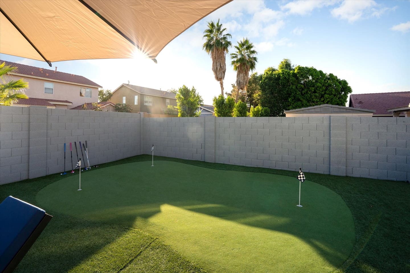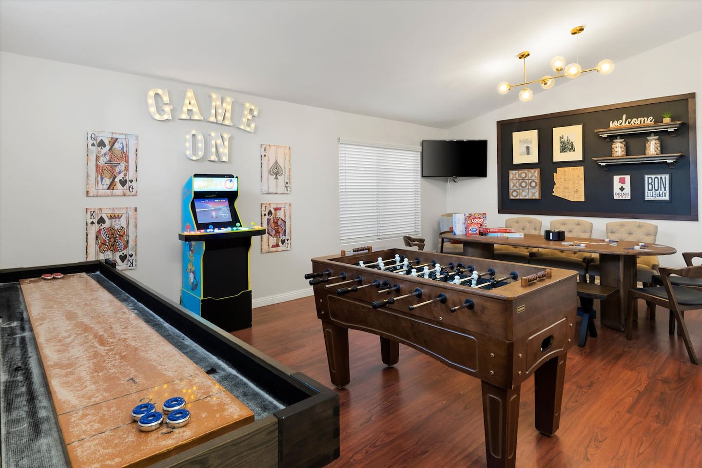 Top 3 Guest Compliments (From Other Platforms) - Incredible backyard with a grotto pool, slide, and games - Excellent setup for families with kids and babies - Fast, responsive host and smooth check-in experience The Perfect Home for Family Gatherings & Group Trips Whether you’re planning a multi-generational family getaway, traveling with kids or babies, or visiting for a golf or tournament weekend, this Chandler home is designed for comfort, fun, and easy living. From the resort-style backyard to the fully stocked kitchen, everything is thoughtfully set up so you can relax and enjoy time together. Sleeping Arrangements – 5 Bedrooms - Primary Suite: King bed, desk, 55” TV, soaking tub, and walk-in shower - Junior Suite: Queen bed, 55” TV, ensuite bathroom - Bedroom 3: Queen bed - Bedroom 4: Two full beds - Bedroom 5: Queen bed All bedrooms include premium linens, charging cables, closets, and luggage racks. All bathrooms include: Bath towels, hand towels, washcloths, makeup remover cloths, hair dryers, shampoo, conditioner, body wash, and hand soap. Pool & Spa Information Heating: - Pool & Spa: $55/night - Hot Tub Only: $15/night - Request at least 48 hours before check-in Hot Tub (Spa Mode): Runs on-demand (not always on). Turn on using the control panel and switch back to Regular Mode when finished. - Up to 101°F - Heats in approximately 15–60 minutes depending on starting water temperature A step-by-step guide for the pool, slide, and hot tub is available at the property. Safety: - Pool fence available upon request - Use at your own risk - Children must be supervised Resort-Style Backyard - Free-form pool with grotto, waterfall, and water slide - Cave-style hot tub inside the grotto - Putting green with LED lights and glow balls - Fire pit with Adirondack seating - Outdoor dining table for 12 - Covered patio lounge - Gas BBQ grill - Beach towels provided Game Room - 4-player arcade with 15,000 games - Shuffleboard and foosball - Board games - 55” wall-mounted Smart TV Living Room - 75” Smart TV - Oversized sectional sofa with ottoman - Open-concept layout with kitchen and pool views - Coffee table Kitchen & Dining - Fully equipped kitchen with large island - Spacious countertops and cabinets - Gas stovetop, oven, and microwave - 4 slice toaster - Blender and mixer - Air fryer and crockpot - Rice cooker - Keurig and drip coffee makers - Refrigerator/freezer plus extra refrigerator in the garage - Dishwasher - Sink with purified water tap - Trays, serving dishes, kid-friendly dishes, glasses, outdoor plates and cups, and silverware - Pots, pans, and basic spices - Dining table seating for 10+ Baby-Friendly Amenities - Two Pack ’n Play cribs with freshly washed sheets (upon request) - Two high chairs - Pool safety fence (guest setup and removal required) Pet Policy - One dog only - Pet fee: $300 per stay - Fully fenced backyard - Two parks within a 5–7 minute walk for dog walking Pet Rules: No bathroom use anywhere in the backyard Dogs are not allowed on beds If dogs are on the couch, please use the provided throw blankets Guests are responsible for all pet-related cleaning and any damage We truly appreciate your cooperation Licenses - Arizona TPT License #21629643 - City of Chandler License #310664 Quiet Hours & Neighborhood Our home is located in a quiet and peaceful Chandler neighborhood. Please observe quiet hours from 9:00 PM to 8:00 AM. No Smoking or Illegal Substances Smoking or vaping is not allowed anywhere on the property, indoors or outdoors. Any evidence of smoking will result in a $700 additional deep cleaning fee. Maintenance & Trash Collection The pool and hot tub are professionally serviced once a week (currently on Thursdays), and landscaping is maintained as needed Trash bins are moved on Mondays and Wednesdays We respect your privacy and want you to feel at home. If you need anything, I’m just a couple of miles away and happy to help. You can message or call me anytime, and I’ll do my best to assist promptly.