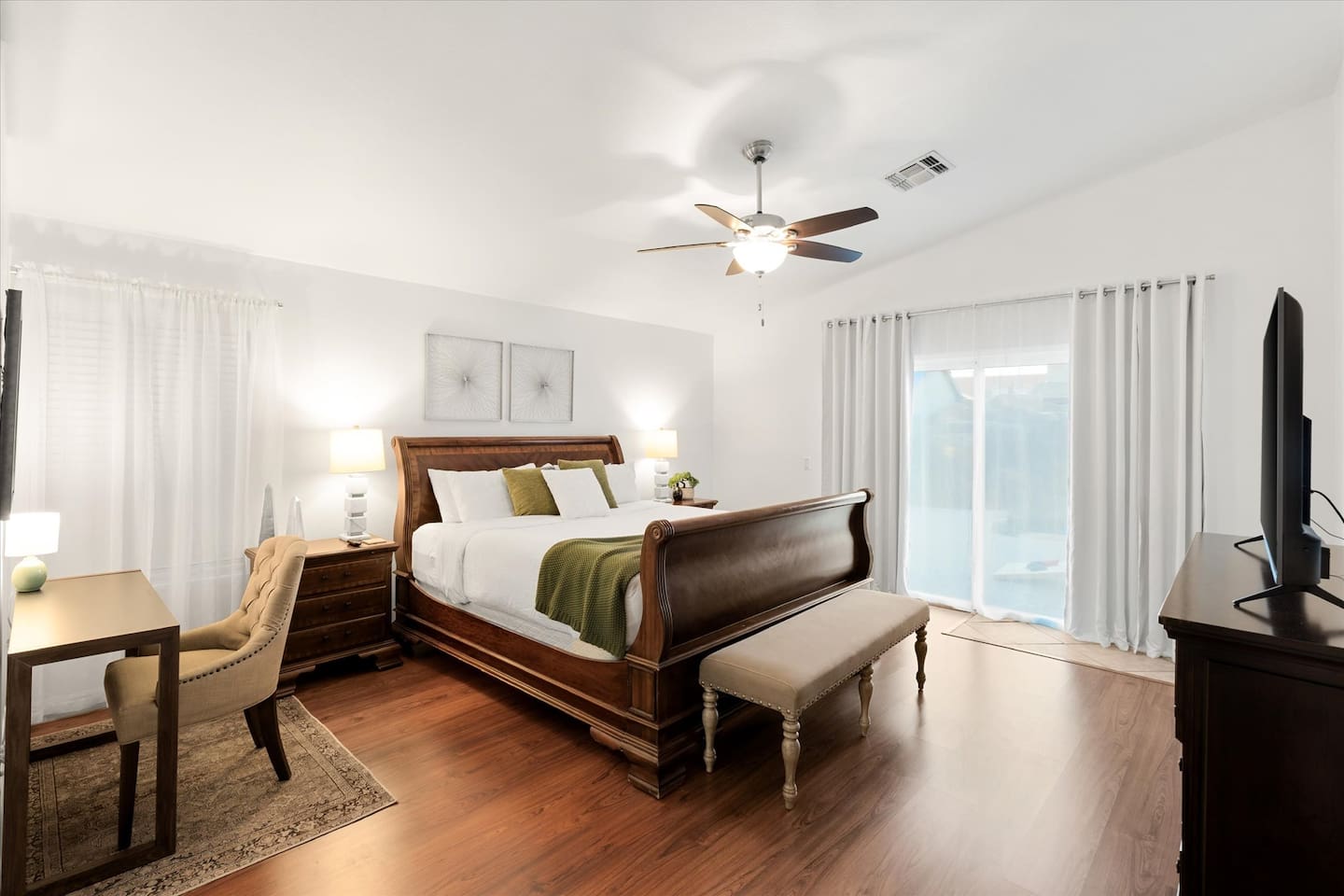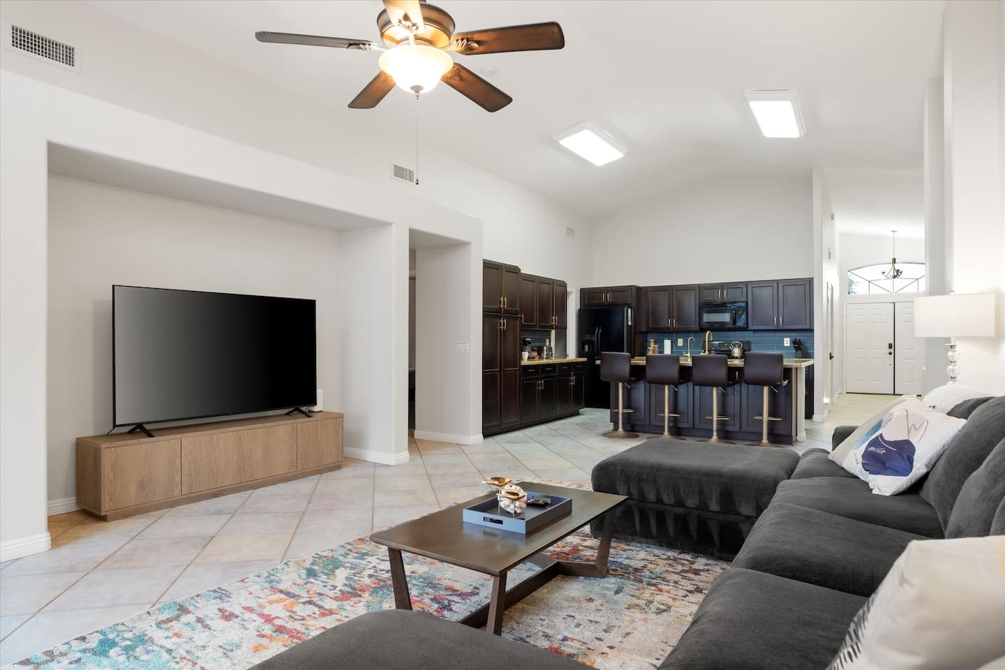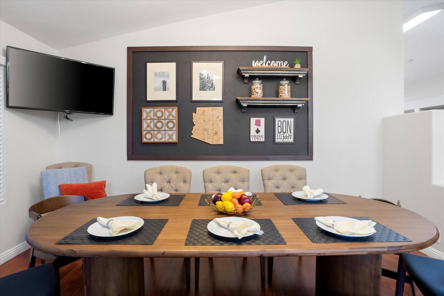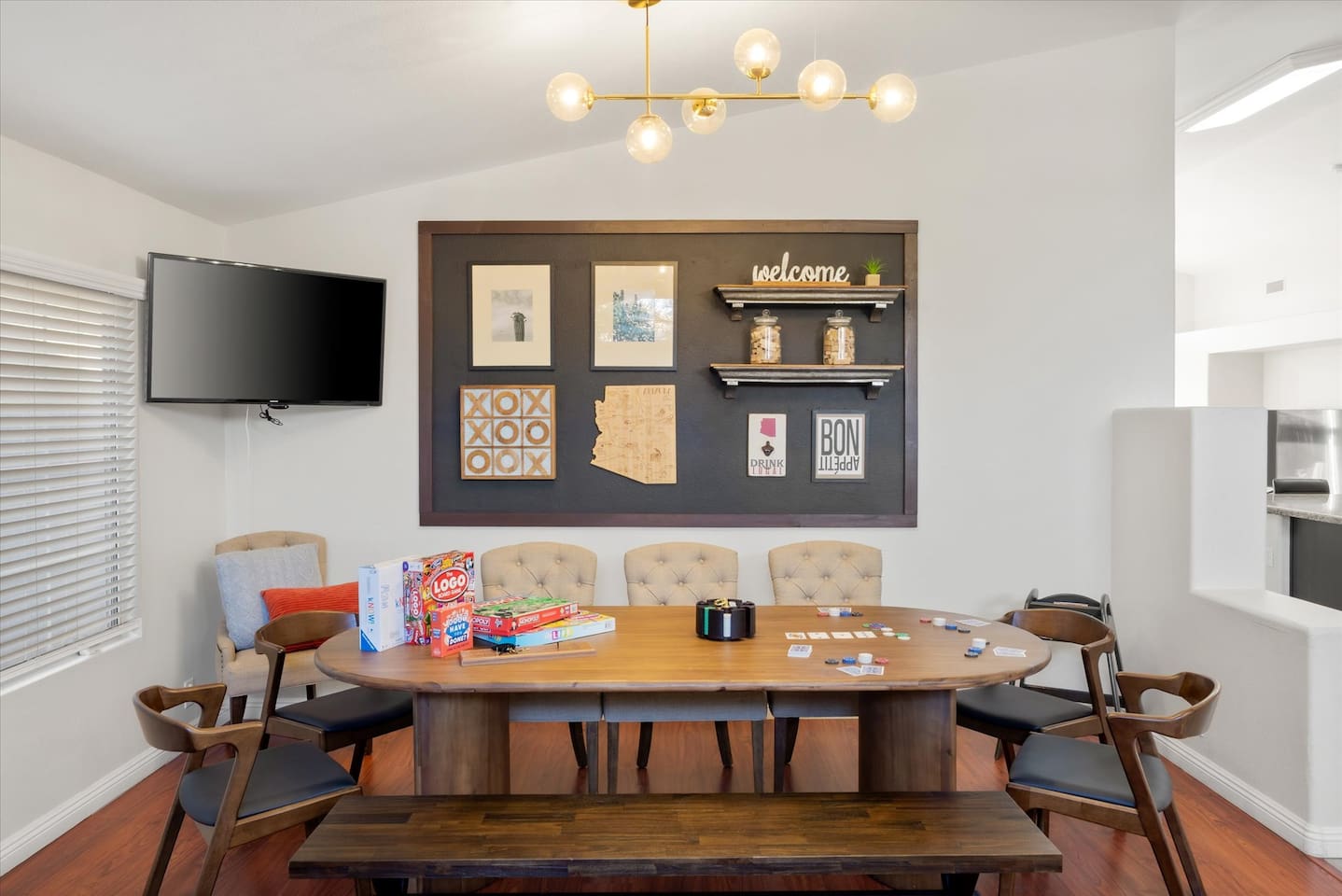 Top 3 Guest Compliments (From Other Platforms) - Incredible backyard with a grotto pool, slide, and games - Excellent setup for families with kids and babies - Fast, responsive host and smooth check-in experience The Perfect Home for Family Gatherings & Group Trips Whether you’re planning a multi-generational family getaway, traveling with kids or babies, or visiting for a golf or tournament weekend, this Chandler home is designed for comfort, fun, and easy living. From the resort-style backyard to the fully stocked kitchen, everything is thoughtfully set up so you can relax and enjoy time together. Sleeping Arrangements – 5 Bedrooms - Primary Suite: King bed, desk, 55” TV, soaking tub, and walk-in shower - Junior Suite: Queen bed, 55” TV, ensuite bathroom - Bedroom 3: Queen bed - Bedroom 4: Two full beds - Bedroom 5: Queen bed All bedrooms include premium linens, charging cables, closets, and luggage racks. All bathrooms include: Bath towels, hand towels, washcloths, makeup remover cloths, hair dryers, shampoo, conditioner, body wash, and hand soap. Pool & Spa Information Heating: - Pool & Spa: $55/night - Hot Tub Only: $15/night - Request at least 48 hours before check-in Hot Tub (Spa Mode): Runs on-demand (not always on). Turn on using the control panel and switch back to Regular Mode when finished. - Up to 101°F - Heats in approximately 15–60 minutes depending on starting water temperature A step-by-step guide for the pool, slide, and hot tub is available at the property. Safety: - Pool fence available upon request - Use at your own risk - Children must be supervised Resort-Style Backyard - Free-form pool with grotto, waterfall, and water slide - Cave-style hot tub inside the grotto - Putting green with LED lights and glow balls - Fire pit with Adirondack seating - Outdoor dining table for 12 - Covered patio lounge - Gas BBQ grill - Beach towels provided Game Room - 4-player arcade with 15,000 games - Shuffleboard and foosball - Board games - 55” wall-mounted Smart TV Living Room - 75” Smart TV - Oversized sectional sofa with ottoman - Open-concept layout with kitchen and pool views - Coffee table Kitchen & Dining - Fully equipped kitchen with large island - Spacious countertops and cabinets - Gas stovetop, oven, and microwave - 4 slice toaster - Blender and mixer - Air fryer and crockpot - Rice cooker - Keurig and drip coffee makers - Refrigerator/freezer plus extra refrigerator in the garage - Dishwasher - Sink with purified water tap - Trays, serving dishes, kid-friendly dishes, glasses, outdoor plates and cups, and silverware - Pots, pans, and basic spices - Dining table seating for 10+ Baby-Friendly Amenities - Two Pack ’n Play cribs with freshly washed sheets (upon request) - Two high chairs - Pool safety fence (guest setup and removal required) Pet Policy - One dog only - Pet fee: $300 per stay - Fully fenced backyard - Two parks within a 5–7 minute walk for dog walking Pet Rules: No bathroom use anywhere in the backyard Dogs are not allowed on beds If dogs are on the couch, please use the provided throw blankets Guests are responsible for all pet-related cleaning and any damage We truly appreciate your cooperation Licenses - Arizona TPT License #21629643 - City of Chandler License #310664 Quiet Hours & Neighborhood Our home is located in a quiet and peaceful Chandler neighborhood. Please observe quiet hours from 9:00 PM to 8:00 AM. No Smoking or Illegal Substances Smoking or vaping is not allowed anywhere on the property, indoors or outdoors. Any evidence of smoking will result in a $700 additional deep cleaning fee. Maintenance & Trash Collection The pool and hot tub are professionally serviced once a week (currently on Thursdays), and landscaping is maintained as needed Trash bins are moved on Mondays and Wednesdays We respect your privacy and want you to feel at home. If you need anything, I’m just a couple of miles away and happy to help. You can message or call me anytime, and I’ll do my best to assist promptly.